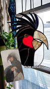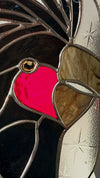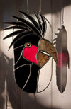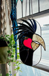 Stained glass suncatcher of a black Palm Cockatoo.