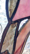 The pink robin is made with new opaque glass and the background is made with a gorgeous antique clear Flannel flower glass.